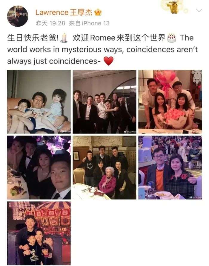 近日,何猷君表哥王厚杰在个人社交平台上发布一组为父亲庆生的照片,还特意放上早前与奚梦瑶、何猷君夫妇合影的照片。