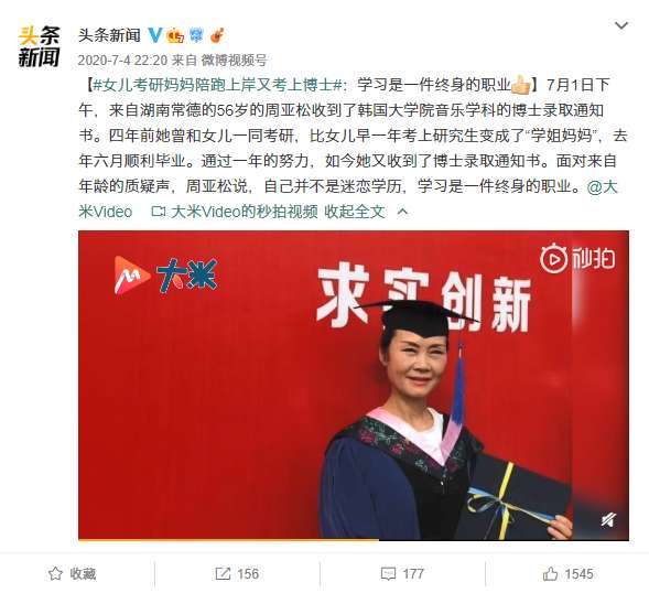 年过半百依然在学术精进的路上乘风破浪,有这样励志的母亲,相信女儿以后也必定有追梦的勇气。