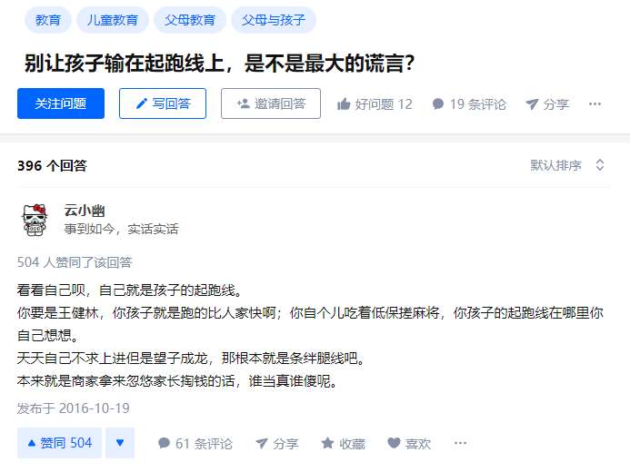 知乎上有一个问题:别让孩子输在起跑线上,是不是最大的谎言?