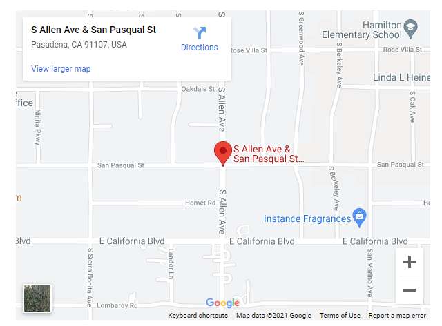 在过去的五年中,Allen街和San Pasqual街的交叉路口发生了两起汽车相撞事故,分别在2017年和2020年,都没有造成严重伤害。