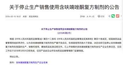 国家药品监督管理局2月15日发布公告称,自即日起停止含呋喃唑酮复方制剂的生产、销售和使用。