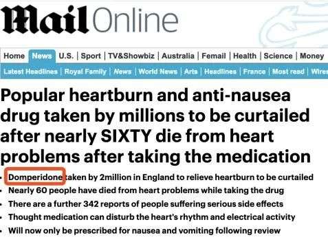 2002年,在加拿大上市了17年的潘多立酮片被判处“死刑”,被禁止使用;