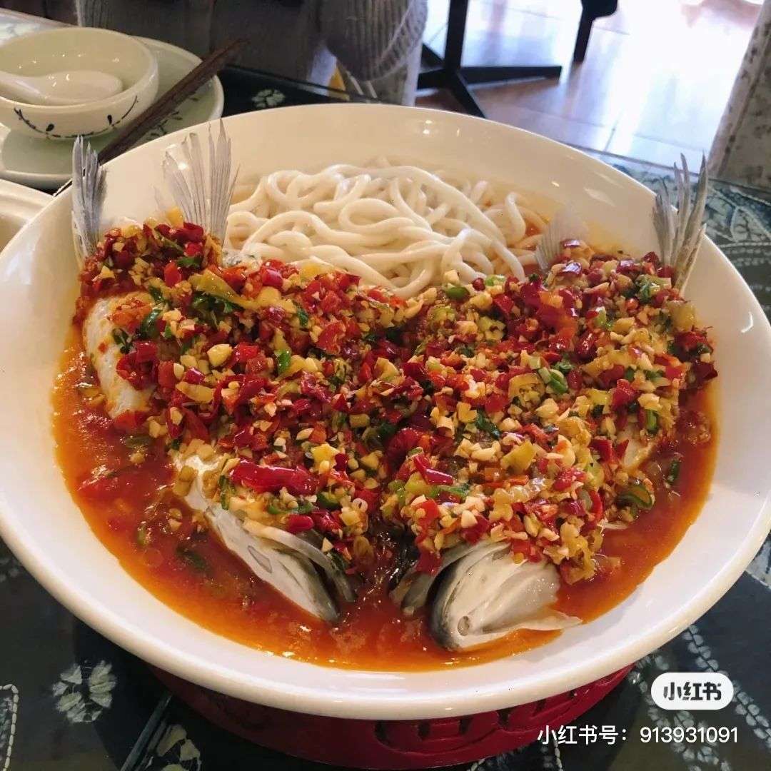 剁椒鱼头:超级大一份 辣得非常够味 配面是乌冬面 QQ弹弹~