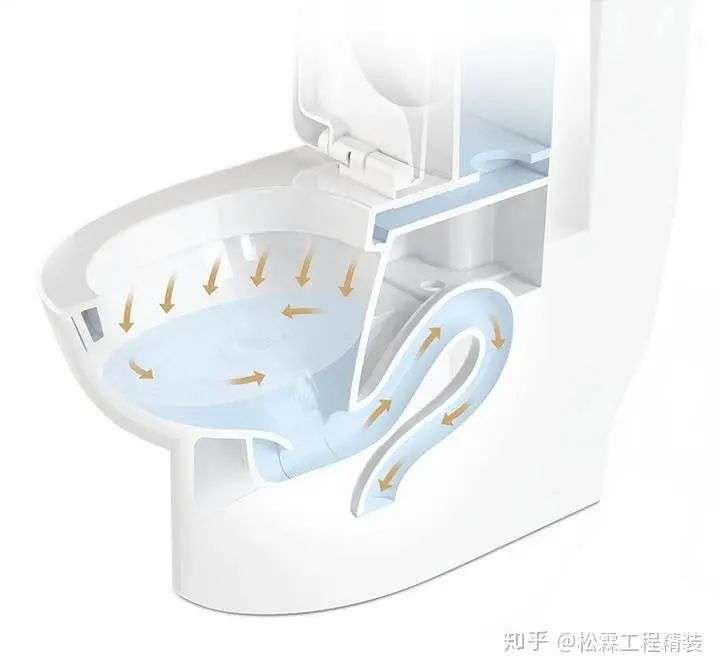 抛开功能更齐全贴心的智能马桶不提,基础的直冲式马桶简单粗暴,利用水的重力加速度,将污物一股脑冲进排污管。