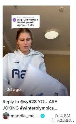 第二次参加冬奥会的21岁美国滑雪小将麦迪·马斯特罗(Maddie Mastro)成了这次冬奥会的编外记者,她每天能发上6、7条短视频,为大家播报冬奥村的生活。
