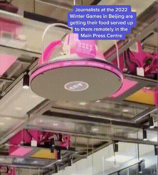 从天而降的食物看上去别具魅力,让大家都想尝试一番,这样的黑科技,不仅能让忙碌的记者们在任何时候都能吃上热腾腾的食物,还减少了人与人之间的接触。