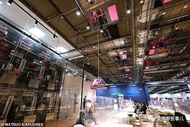 饭做好后,菜品会通过餐厅天花板上的“云轨”直接投送到点餐人的饭桌上,