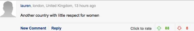 “又一个不尊重女性的国家。。”