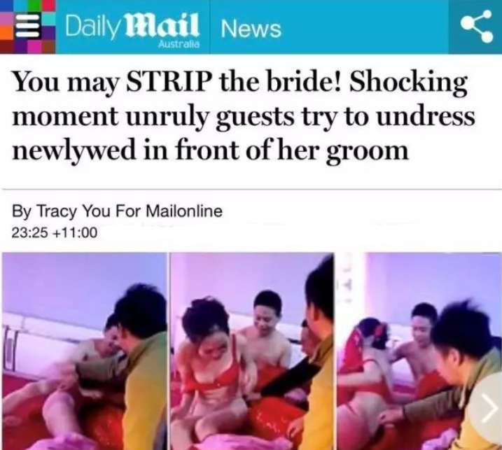 (澳媒标题:“新娘在新婚夜被客人扒光”)
