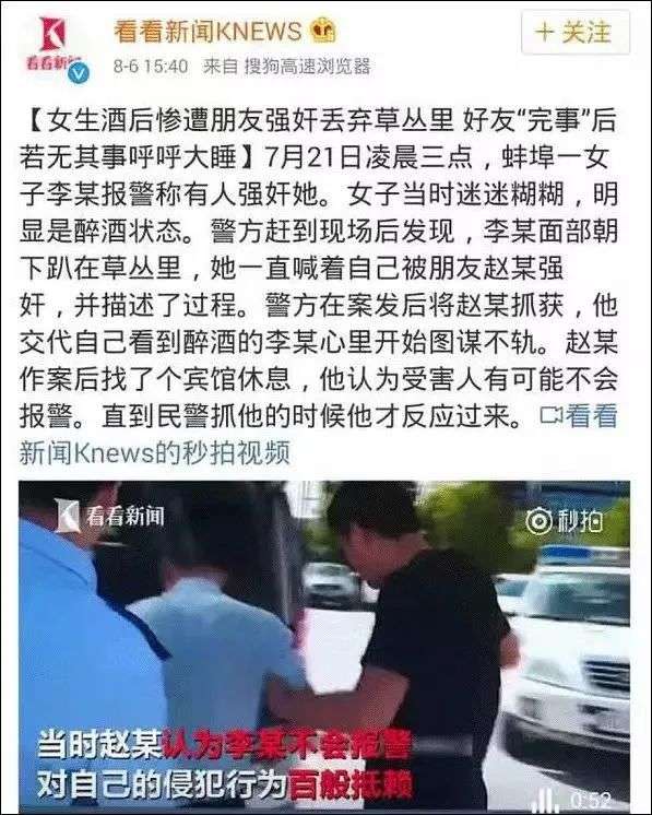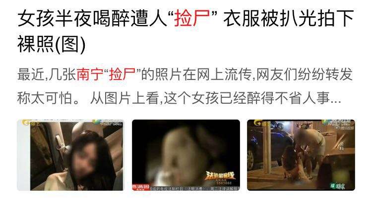 2016年7月,广西一名年轻女子喝醉酒,被捡尸者扒光衣服性侵,并拍下裸照。