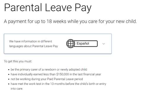 • 在领取 Parental Leave Pay 期间正在休假或不工作