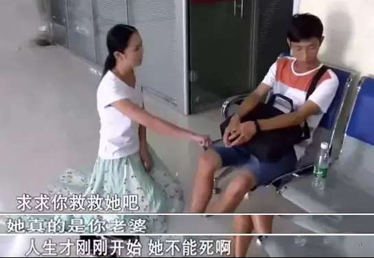 湖南郴州一家医院的走廊里,女人跪在男人面前,苦苦哀求。
