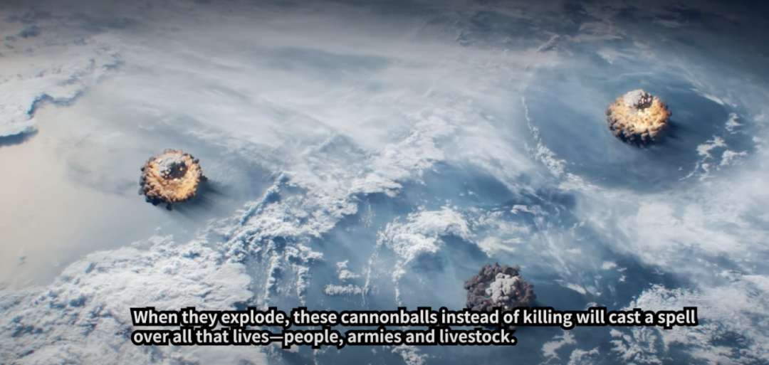 因为这是当时的预言,表述的可能有些不清楚。但从目前人类文明和科技发展的程度来看,这个“炮弹”说的很有可能就是核武器。
