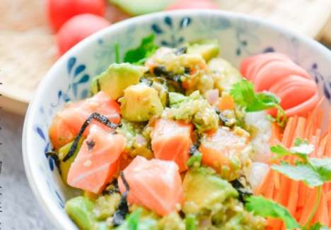 小编给不太了解波奇饭Poké的朋友们介绍一下,这是一种风靡全球的轻食“快餐”,雏形本是夏威夷海岛的渔民零食。初步的Poké以三文鱼为代表的生海鲜切立方体,淋上海藻和额外酱汁,大概形式就是直接做成沙拉然后盖在米饭上。