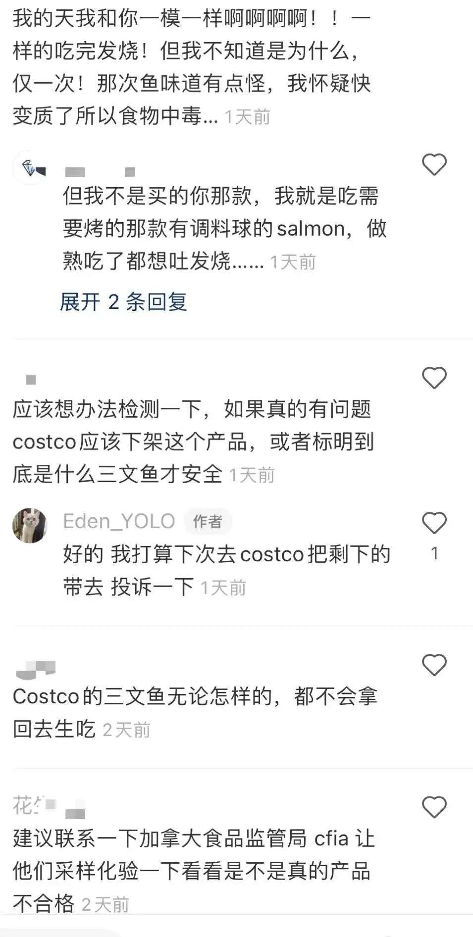 加拿大一名华人网友爆料,自己吃了从Costco买的三文鱼后,发烧+恶心+乏力。