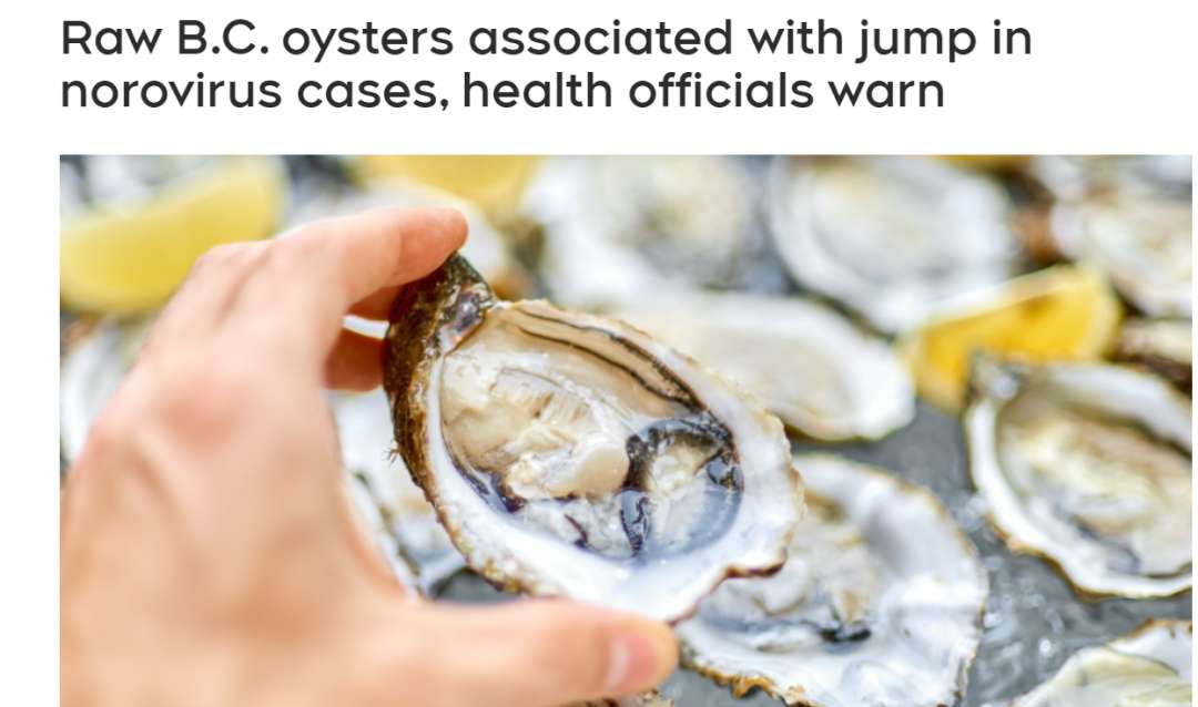 卫生官员警告公众,诺瓦克病毒(norovirus)病例的增加与吃生BC省产的牡蛎有关。