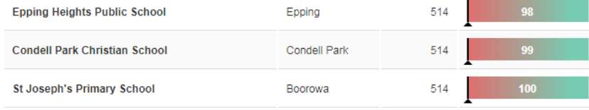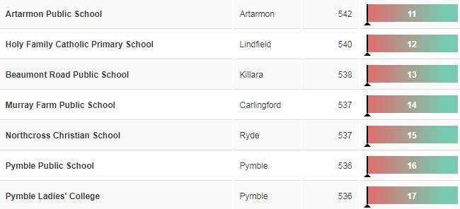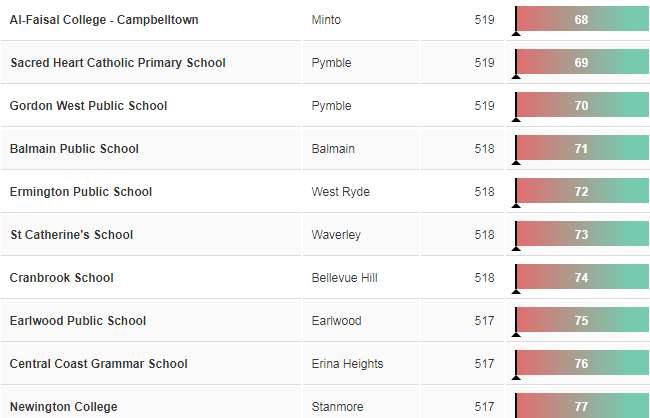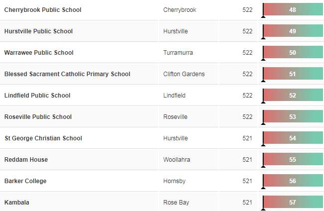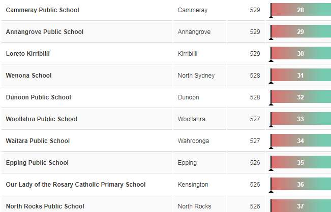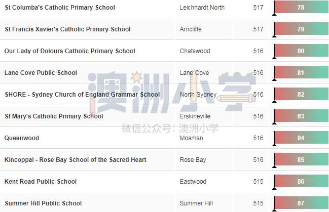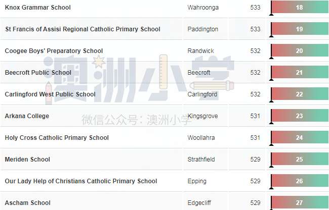 还有一些小学进步十分迅速,Carlingford West 前进了7名;North Rocks 前进了10名。