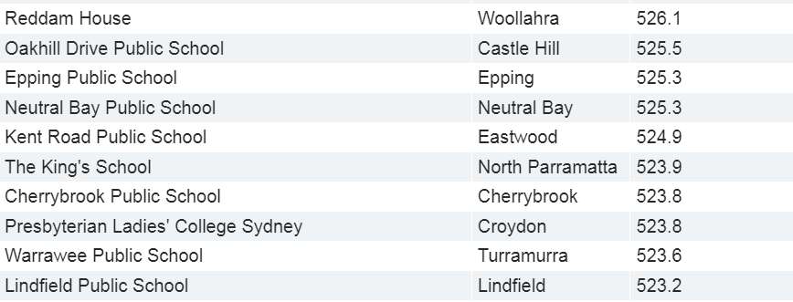 许多顶尖学校都位于悉尼的北岸和东郊地区,但包括中西部和远北海岸在内的地区学校的分数有所提高。