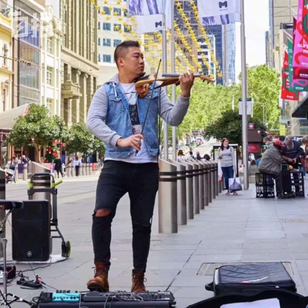一个月前我在墨尔本的一个大桥上卖艺,现在都是一个小提一个大提合奏的表演形式。