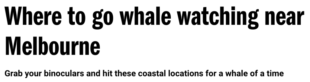 虽然在维州的海岸各处都可能看到鲸鱼,但以下是最合适、最可能看到这一壮观景象的地方,所以,快带上望远镜,和小伙伴们一起去这些沿海地区看一次鲸鱼吧!