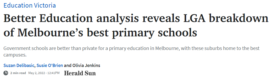 近日,澳洲独立机构Beter Education公布了墨尔本各个地区小学的评分。