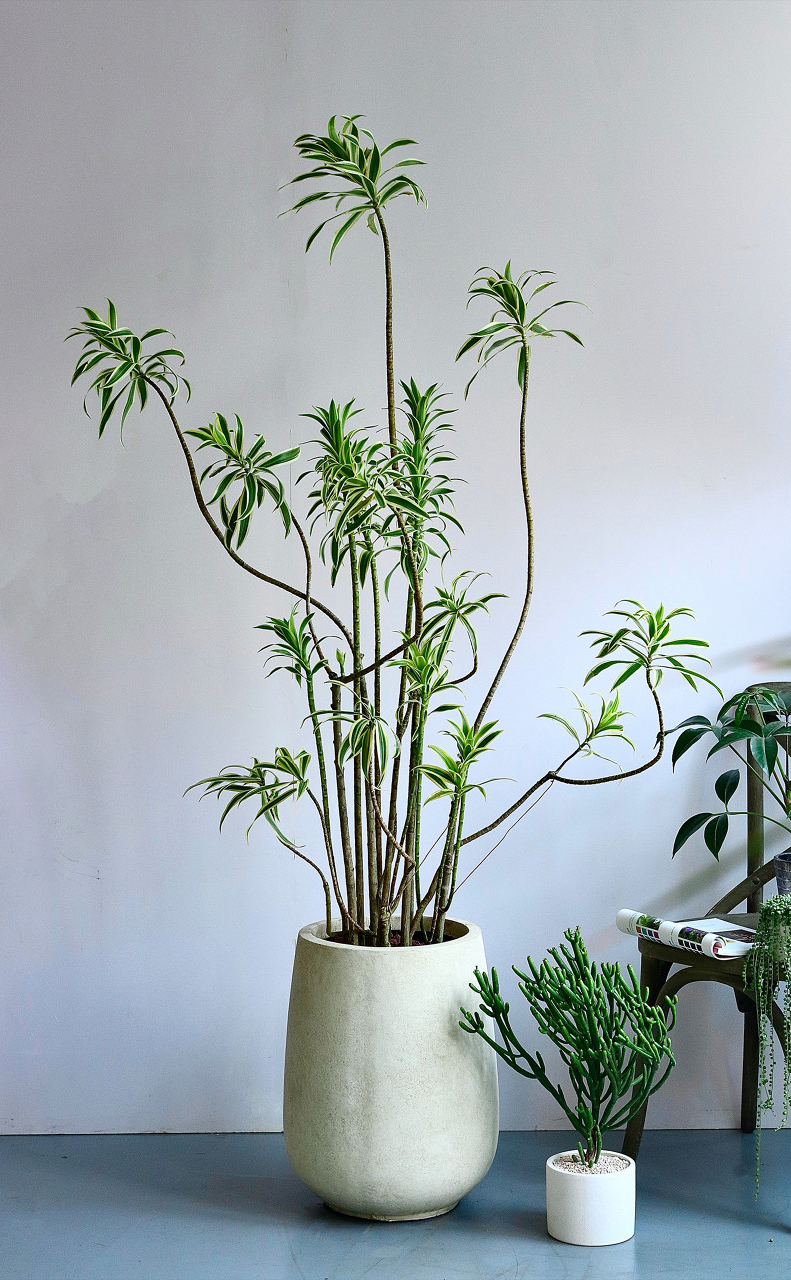 如果你想在卧室里摆放一个大型植株的话,选百合竹准没错,百合竹的硬中带柔的线条感很有雕塑感,每天醒来看见它,会觉得很愉悦吧。
