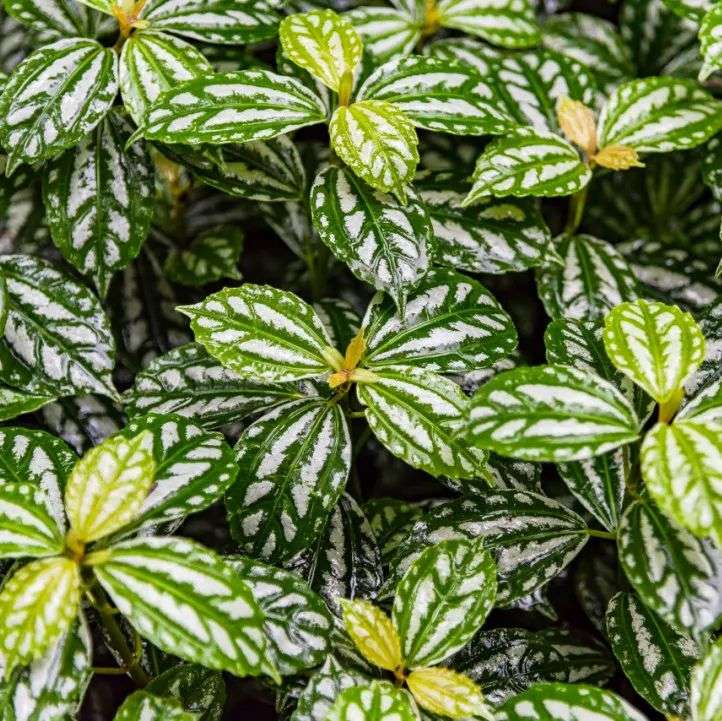 冷水花的叶面很有质感,翠绿的底子上长出了白色的花纹。????