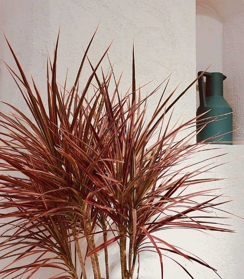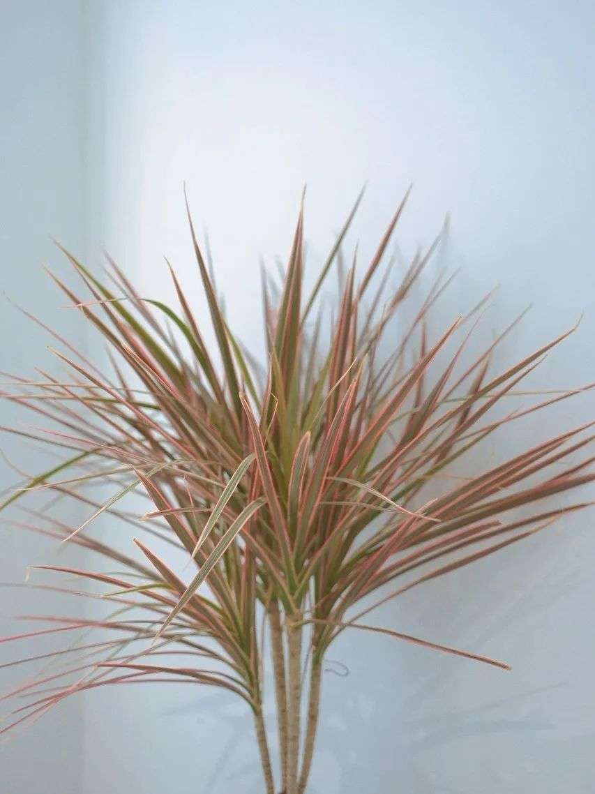 造型很有异域风情的红边龙血树,就像是一个绚烂的爆炸头,多彩的叶片张扬四射,是少有的暖色系植物。
