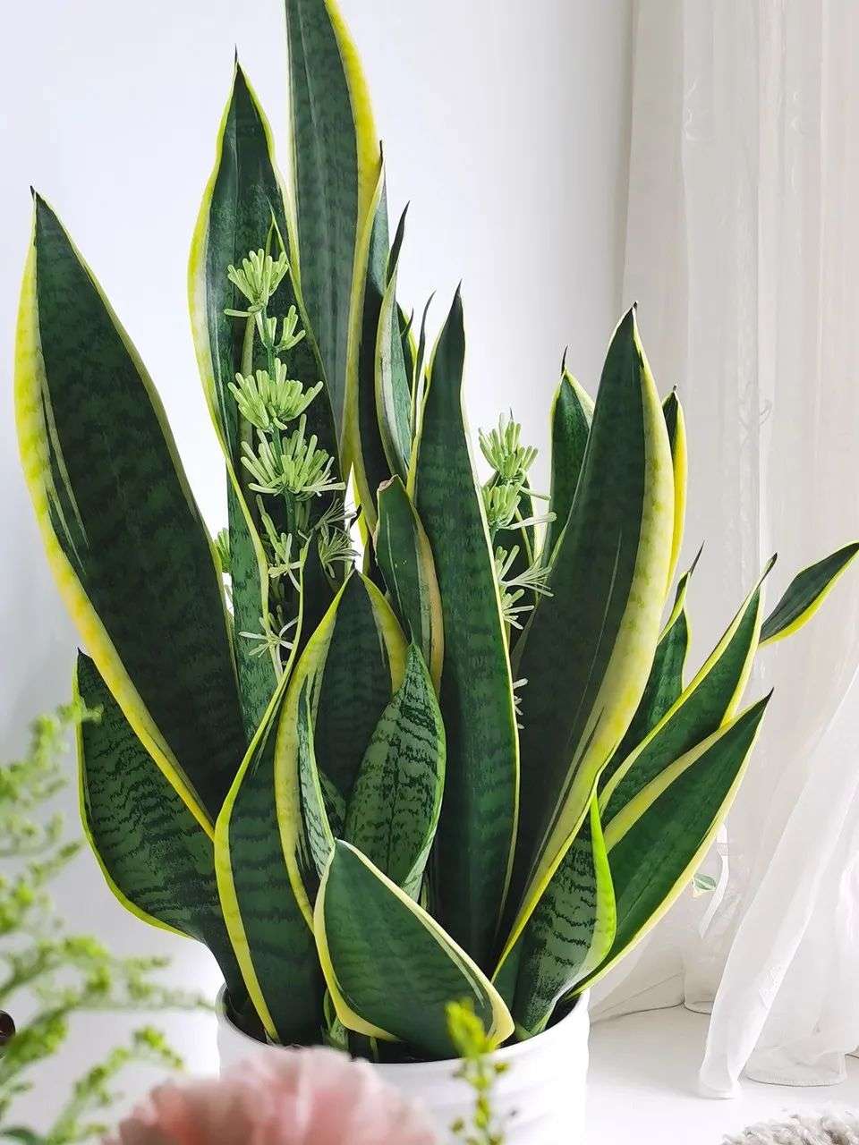 品种很多样,常见的是带金边或带白色锦斑的虎尾兰,它们的姿态也有差异——细而高的棒叶类型可以放在地上观赏,精致紧凑的类型可以放在窗头柜或架子上。