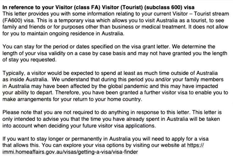 由于之前疫情严重,中澳边境关闭,许多pr和citizen的父母留在澳洲无法回国。当时澳洲政府为了应对这种情况,人性化地给境内旅游签续签。但澳洲已进入后疫情时代,中澳边境已经重新开放,机票价格也慢慢降了下来,澳洲政府针对父母的旅游签证续签问题也默默地做出了相应调整。