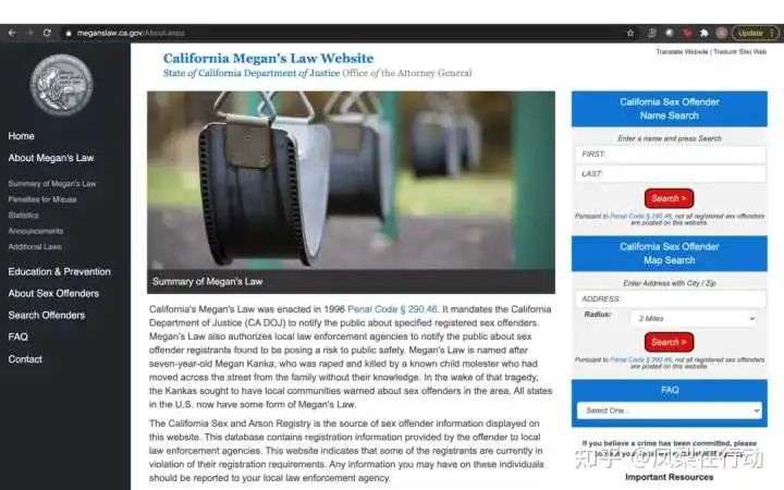 1996年《梅根法案》规定:将正式建档的性犯罪案件资料放到网上以供读取;且此等罪犯被释放后必给予以备案存档。