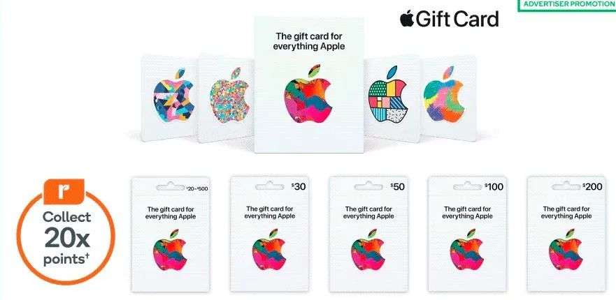 购买苹果礼品卡,可集20倍Everyday Rewards积分!!!