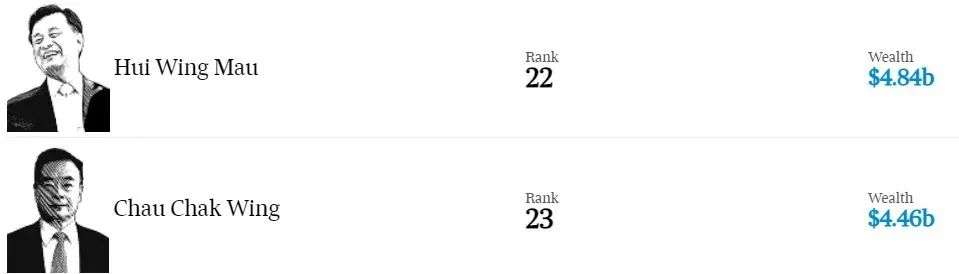 而在榜单前50的富豪当中,也还有多名华人。这其中,华人富商许荣茂和周泽荣分列第22和23位,两人的总财富分别为48.4亿澳元和44.6亿澳元。