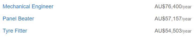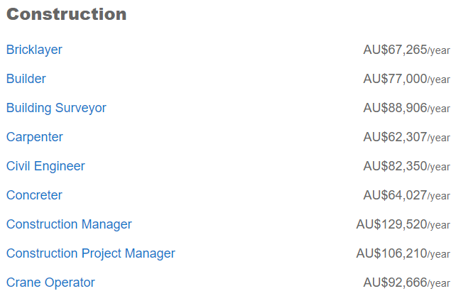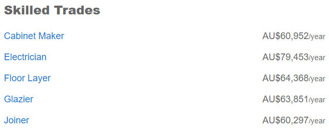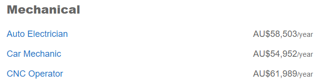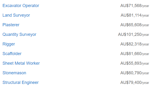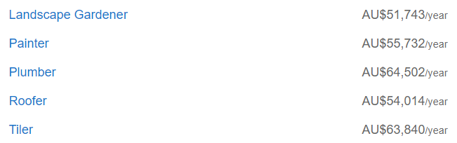 粗略看下来澳洲的Tradie们工资约在$5-6万不等,最高的电工则差不多能拿到8万澳币。