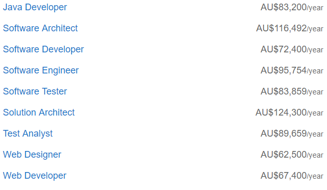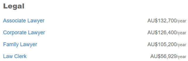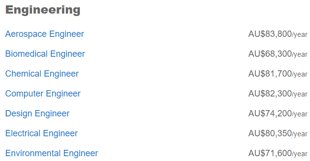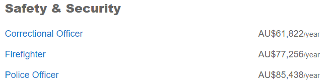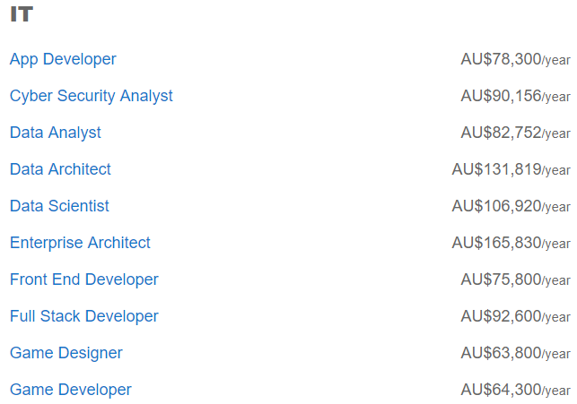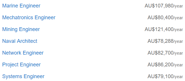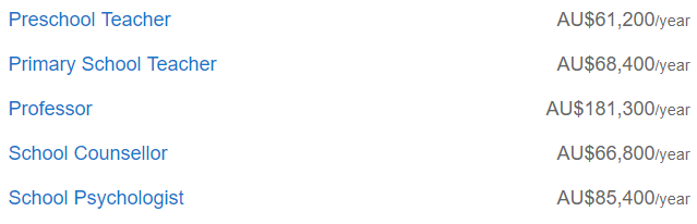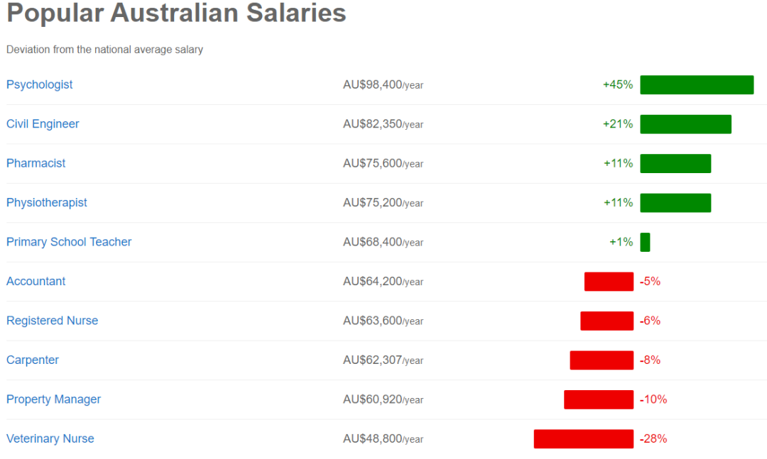 澳洲比较热门的职业基本都在这张表里了,工资比全国平均值高的有5个: