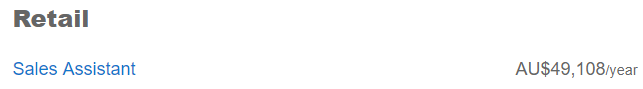 零售业这次只统计了两种,分别是销售助理$4.9万和门店经理$5.6万。