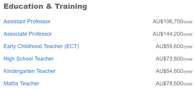热门移民专业中不少都属于这类专业,其中工资最少的是幼儿园老师$5.46万,最多的教授级别则能拿到$18.13万。