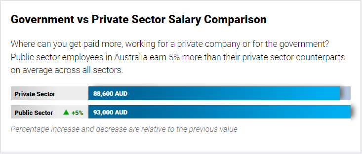 另外还有一个不少童鞋都会关注的点,就是澳洲政府与私营员工的区别。这次的统计显示,公共部门的收入平均要比私营部门高出5%哦~