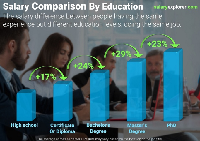 大学毕业比高中文凭收入多24%,硕士毕业收入再多29%,同等职位的博士收入比硕士又高出23%