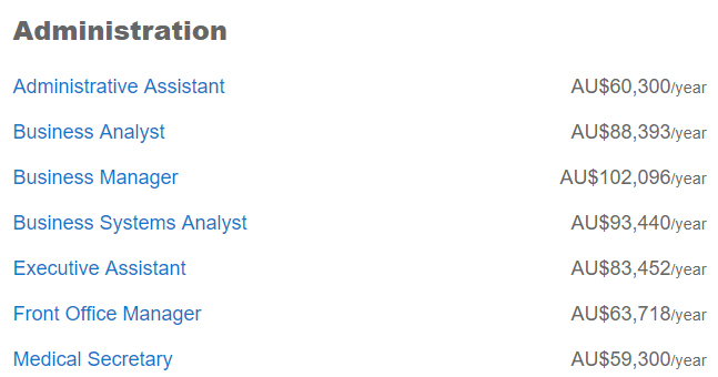 行政也是不少文科生的选择,平均年薪最低的秘书为$5.52万,最高则是项目经理$11.78万。