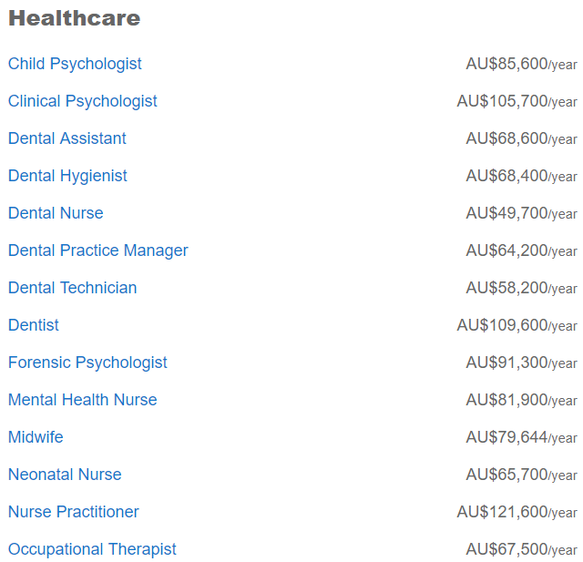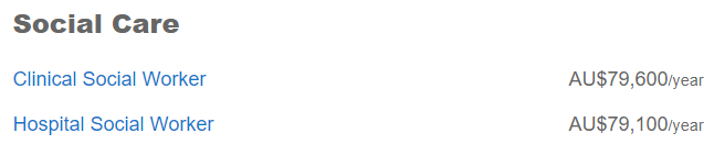这个专业也是移民大户,从临床社会工作者、心理健康社工、医院社工到一般的社会工作者,平均薪资都在接近8万澳币。