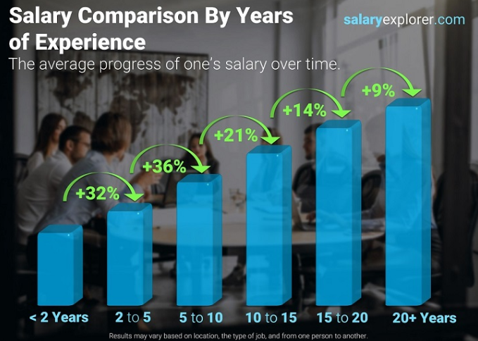 当你有5到10年的工作经验,工资还会再次增加36%!