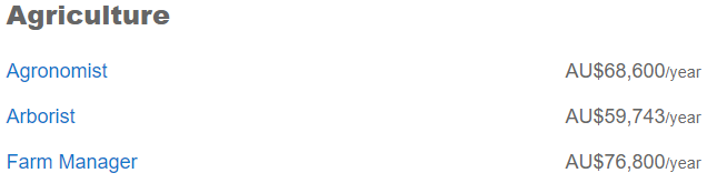 澳洲农业相当发达,这行里工资最低的是农场工$4.86万,最高则是农场经理$7.68万。