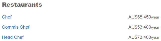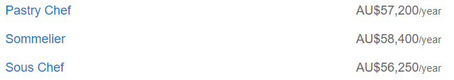 在餐饮业工作的朋友们看这里:助理厨师平均年薪$5.34万,厨师、糕点师、侍酒师、副厨师长等年薪都在5-6万区间,最高的主厨则能达到$7.34万。