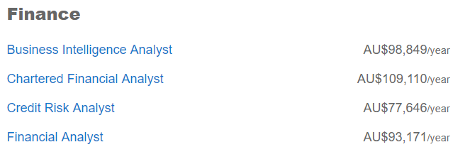 华人有多爱金融业就无需多说了,现在看来这确实是个不错的选择,最低的信用风险分析师也有$7.76万,财务总监则普遍能拿到$11.9万。