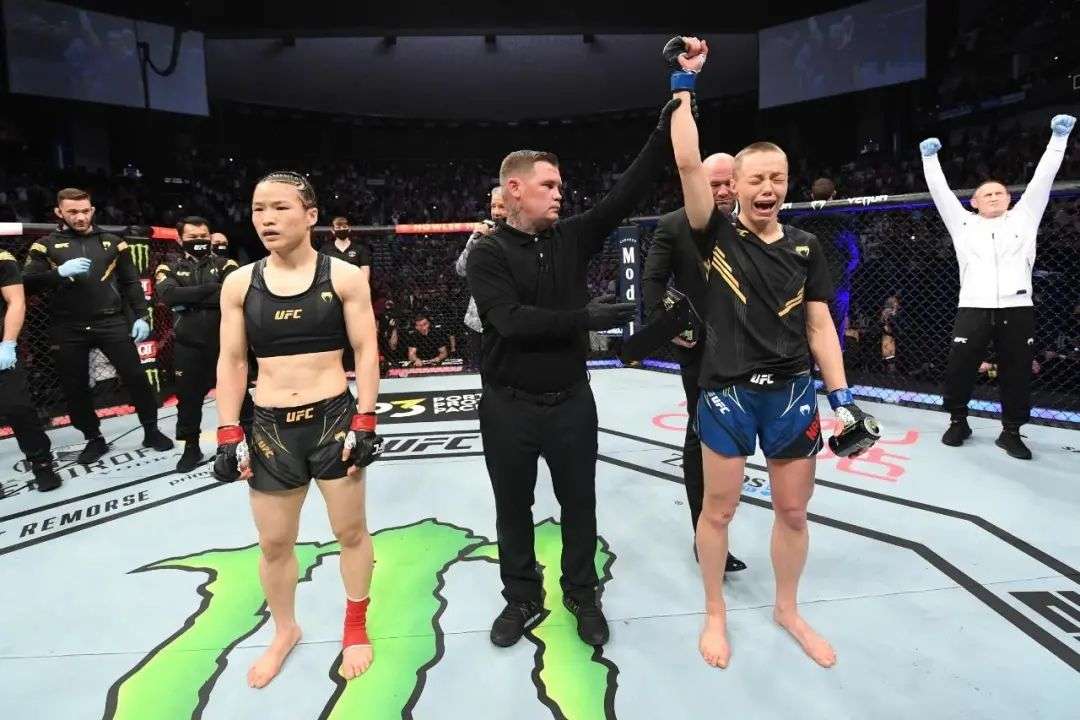 2021年11月7日,UFC268,纽约麦迪逊花园广场,罗斯与张伟丽二番战开打,前三个回合,中国姑娘打的很漂亮,但最后两个回合,她的体力明显下滑,第五回合,她胳膊软到不行,对手很快发现了漏洞,对她进行反压,最后,罗斯掌握了控制权。