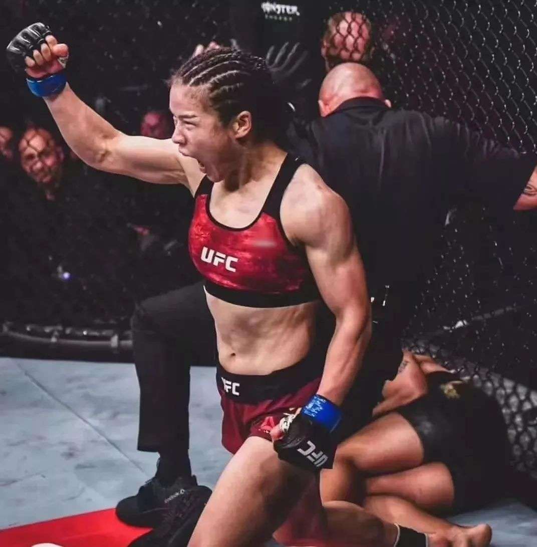 能!在短暂的相互试探之后,张伟丽运用凶狠的膝盖和连续的内围拳肘重创对手,42秒!电光火石之间,须臾一瞬终结,UFC历史上的第一位中国籍运动员就这样诞生了!