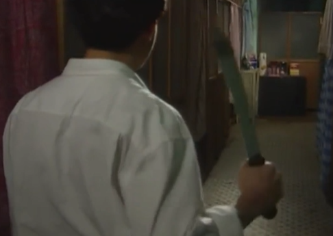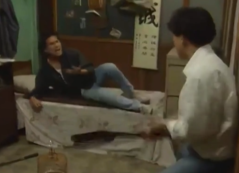 邓英杰的话深深激怒了吴旭泰,他拿着牛肉刀冲进邓英杰的房间劈他,却被身手敏捷的邓英杰躲开,随后还被一把推开。