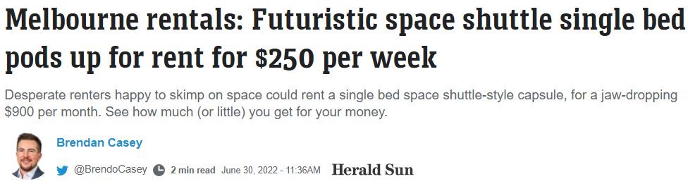 陈先生认为,更多配备太空舱的房屋可能是墨尔本租赁市场问题的“解决方案”,他还呼吁地方议会应该鼓励房东去安装“太空舱”。