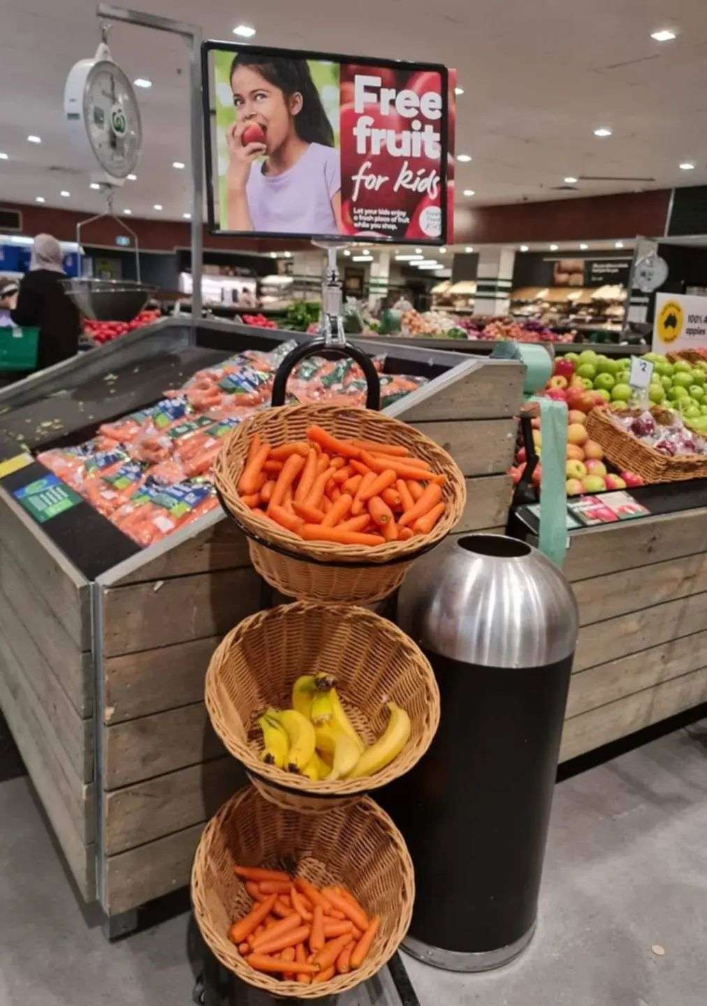 这个人性化的措施不仅可以让大家带孩子逛超市的时候不用再担心孩子乱拿购物区的水果,而且也能避免孩子因为无聊而吵闹。